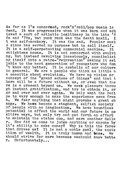 I had moved my studio set-up back to my job's offices, just like I did for the Demo(n)s III, Demo(n)s IV and Union Point Sessions collections. This was necessary because I'd given-up my solitary room in the apartment I was sharing with two friends because I didn't want to spend any time alone. I was getting over a bad relationship. I didn't have a studio, so I had to move my equipment back to the office.